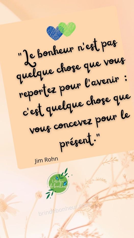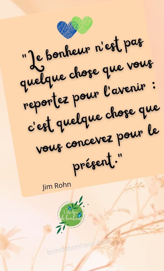 "Le bonheur n'est pas quelque chose que vous reportez pour l'avenir : c'est quelque chose que vous concevez pour le présent." Jim Rohn