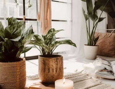 Les matières naturelles sont au cœur de l’univers bohème : rotin, bois brut, lin, fibres tressées, macramé… Elles apportent chaleur, authenticité et une connexion immédiate à la nature.
